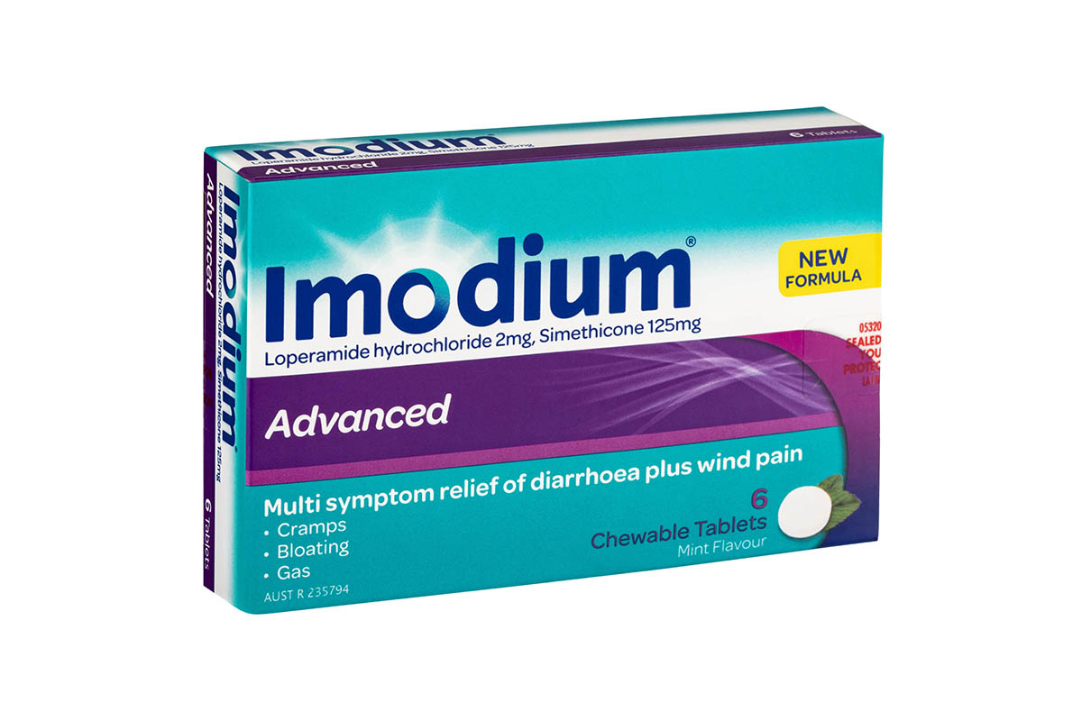 Use Imodium Advanced for: Multi symptom relief of diarrhoea and the pain and discomfort caused by wind including bloating, distension, cramping and flatulence.